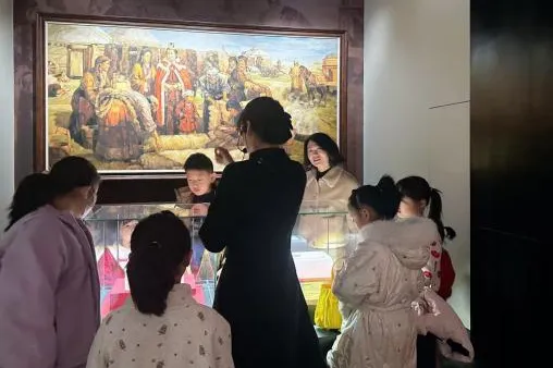 活动伊始,小朋友们在社教老师的带领下走进展厅,驻足于与弘化公主和亲相关的馆藏文物前。从见证民族往来的器物遗存,到记录历史场景的图文资料,讲解员结合生动史料,将弘化公主远嫁吐谷浑的传奇历程、河西走廊各民族交往交流交融的历史脉络娓娓道来。“原来这些文物背后藏着这么多民族团结的故事!”小朋友们听得专注,不时举手提问,在互动交流中加深了对本土历史文化的认知。