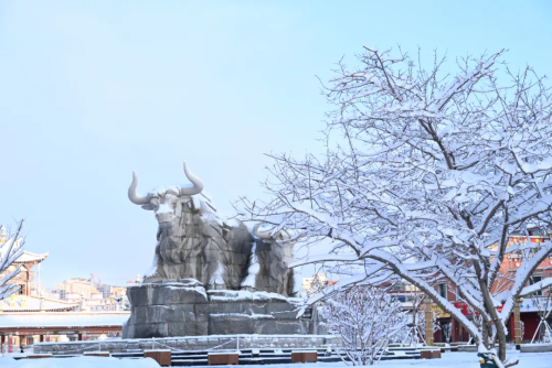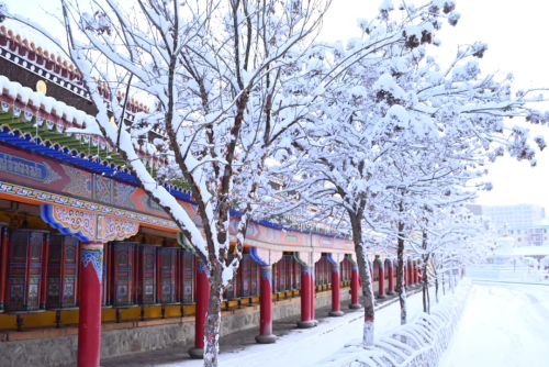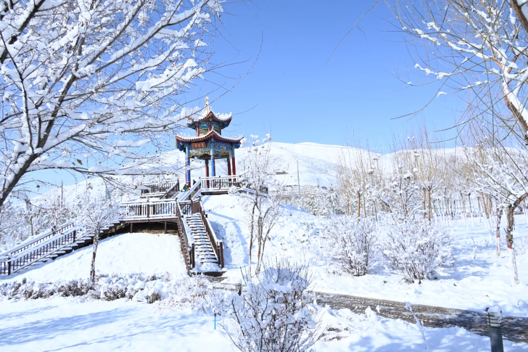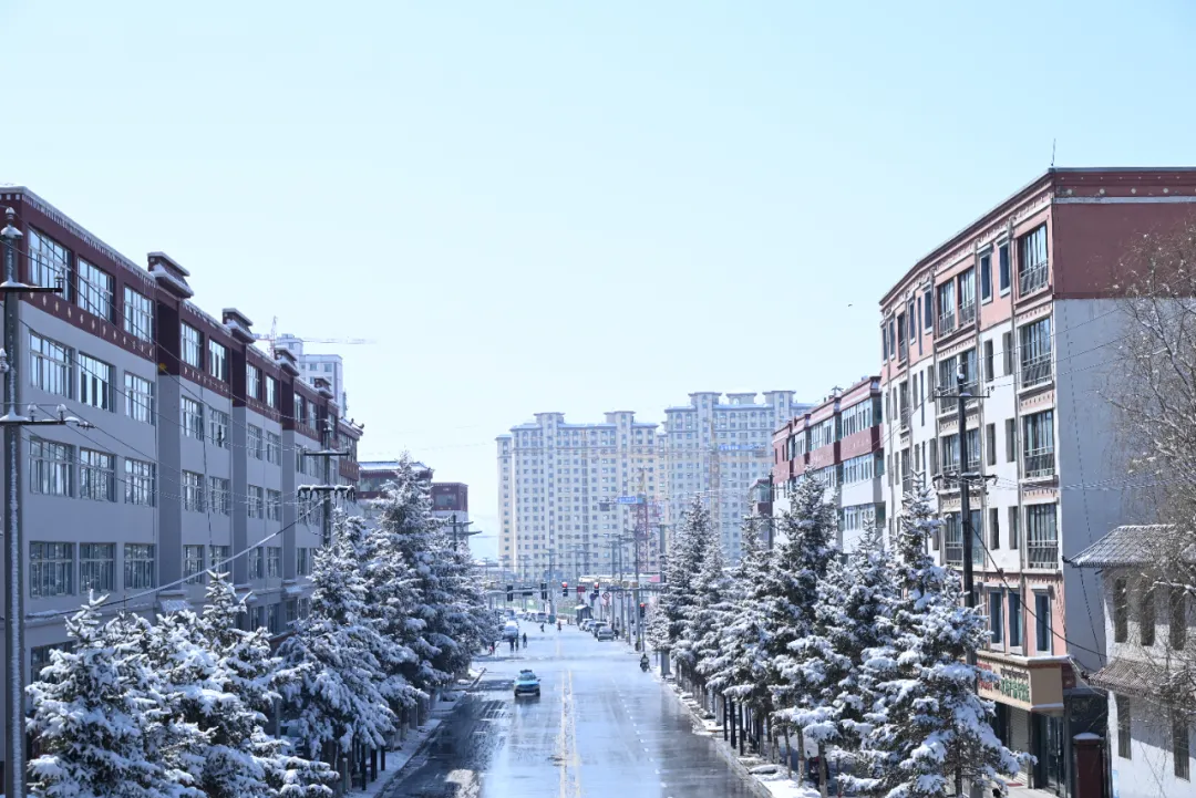 告别了草原的辽阔,天祝县城正被一片温暖的静谧轻轻包裹。雪花为这座高原小城按下静音键。初冬的天祝,将秋日的绚烂与冬日的肃穆都化作笔下的留白。这里没有深秋的喧嚣,也不见严冬的凛冽,只有一份刚刚好的静谧,一抹淡淡晕染的壮美。