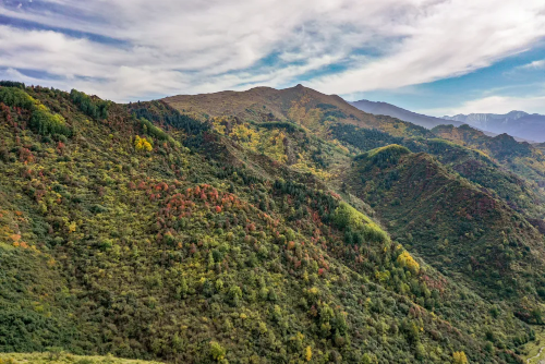且看那山。那连绵的山峦,仿佛是天地灵气独钟之处。山上树木枝叶恣意舒展,将积蓄的季节精华,都化作了惊心动魄的色彩。这边是灼灼的赤红,“霜叶红于二月花”,似一团团安静燃烧的霞焰;那边是流金般的明黄,从山腰泼洒至山巅,浩浩荡荡,宛若一条奔腾的光河。其间又点缀着苍郁的松柏,宛若画卷沉静的墨底,稳稳托住了这满山的绚烂,让那壮阔之景,愈发显得庄重而深沉。