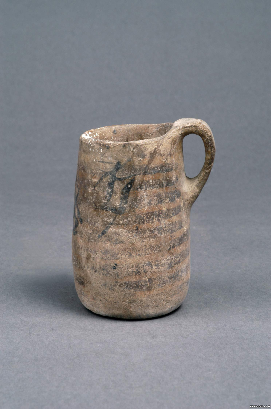 马家窑系平行线纹单耳彩陶罐