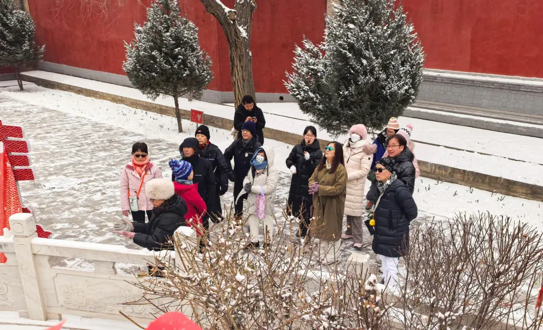 12月12日,一夜冬雪,让千年古城凉州裹上银装,雪落城廓,丹青自成。雷台旅游景区,铜车马仪仗俑覆雪而立,似载着丝路驼铃的余韵静立寒天;河西都会场馆的肌理在银装里舒展;武威文庙的红墙朱门间,飞檐积玉、祈愿红绸沾雪,文脉古韵浸在清冷的诗意里。
