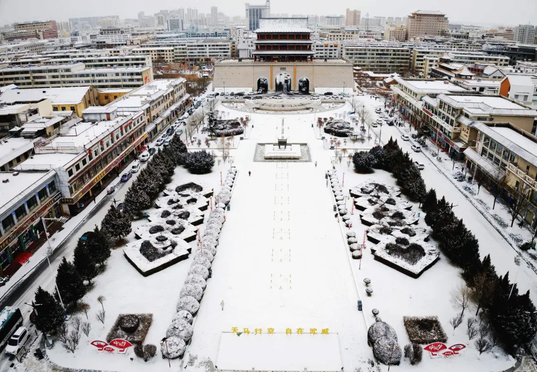 这场冬日初雪,让武威的历史厚重与城市新颜,都浸润在了一帧帧素净温柔的冬日诗笺里,凉州城宛如一幅徐徐展开的水墨丹青,诗意盎然。