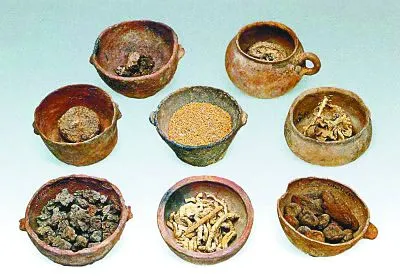 ▲洋海墓地出土的众多盛满东西的器物