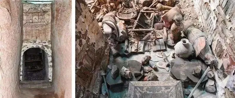 ▲吐谷浑慕容智大墓内的壁画和器物