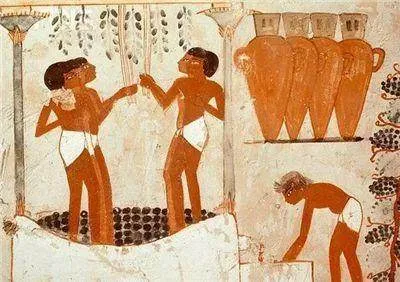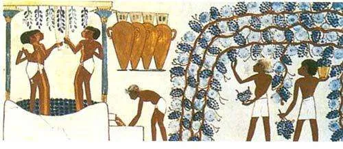 ▲古埃及人采收葡萄和酿造葡萄酒的壁画