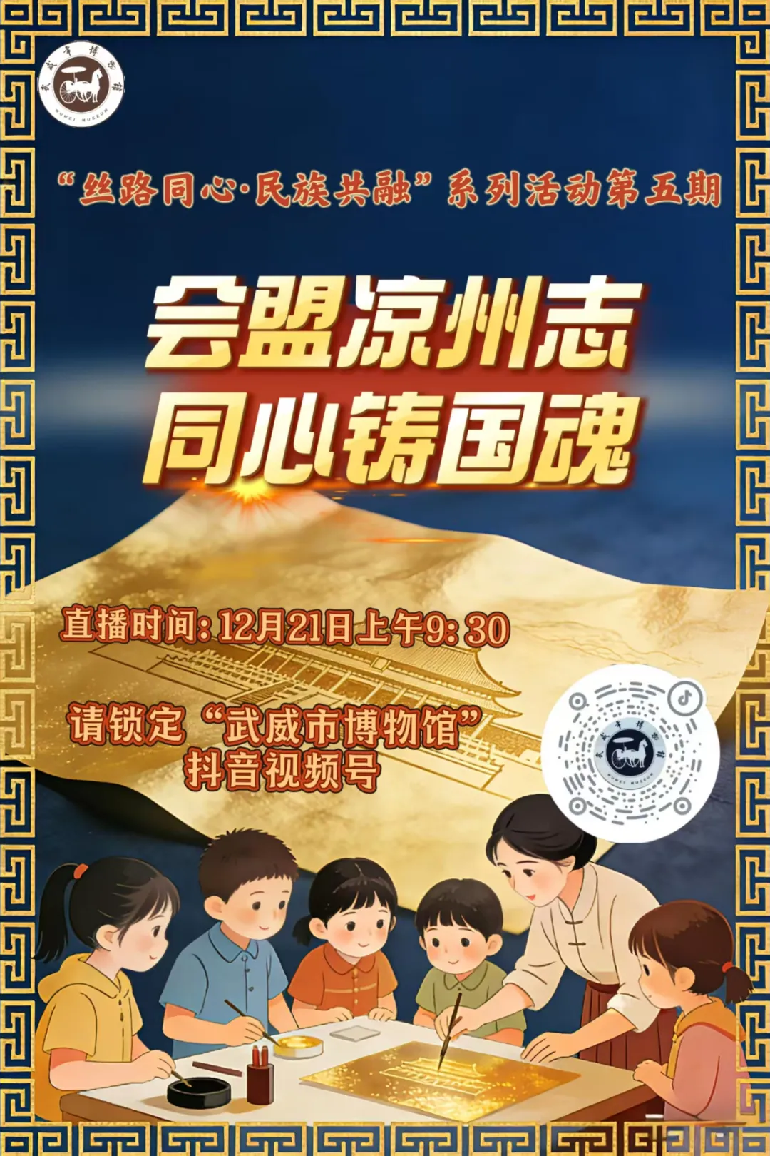 12月21日上午9:30锁定直播间,让我们一起走进武威市博物馆,循着历史的足迹,读懂凉州故事里的家国情怀,感受中华民族共同体意识的磅礴力量!