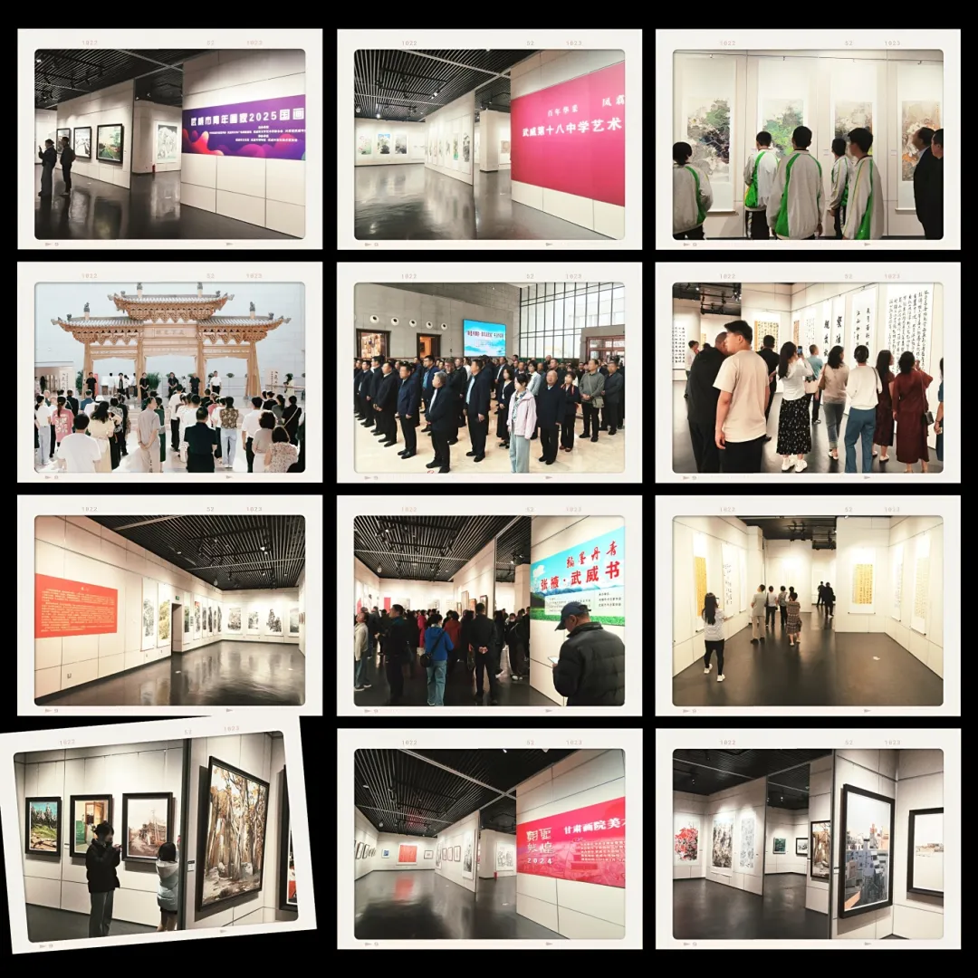 书画类展览8个:“朝圣·敦煌——甘肃画院美术创作工程作品展”(2025.03—2025.04)、“百年华采 凤翥丹青——武威第十八中学艺术教育成果展”(2025.04—2025.05) 、庆祝中国共产党成立104周年市直机关“永远跟党走·奋进新时代”书法、美术、摄影作品展(2025.06—2025.08)、中韩书法交流展(2025.08)、大道至简——甘肃简牍书法临创学术邀请展(2025.08—2025.09)、“翰墨书廉韵·清风润武威”书法作品展(2025.09—2025.10)、翰墨丹青·丝路风采——张掖·武威书法美术精品展(武威展)(2025.10—11)、武威市青年画家2025国画油画创作展(2025.12—2026.01)。丹青描初心,镜影照征程。2025年系列书画摄影展点燃时代豪情:建党百年展颂党恩深厚,廉政书画展扬清风正气,青年创作展显青春担当。敦煌烟霞、简牍风骨融于笔端,中韩情谊、同城雅韵凝于尺幅,既彰显文化自信又传递了精神力量,更激励我们披荆斩棘,在强国路上续写新时代荣光。