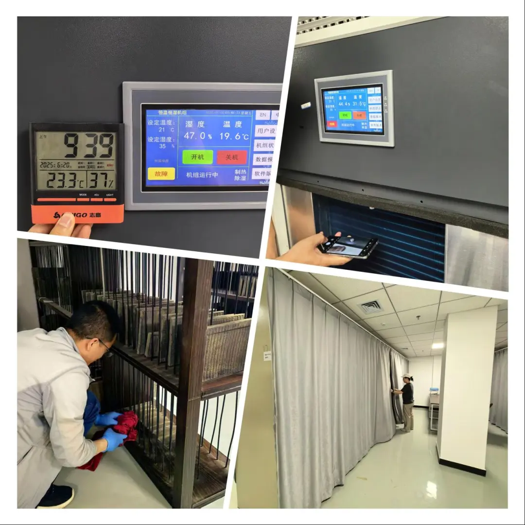 文物安全是文博工作的生命线,始终将文物安全置于首位,绷紧安全防护之弦,严格对标规范要求,定期对文物库房、展厅开展全方位“拉网式”安全排查。每一次排查都细致入微,详实记录每一处细节,构建“检查—记录—整改—复核”的闭环管理链条,对发现的安全隐患第一时间整改清零。全年累计开展库房及展厅安全检查90余次,成功将各类安全风险隔绝于文物之外。同时,悉心呵护文物保存的“环境调节器”,定期对环境监测设备、恒温恒湿设备开展维护保养,顺利完成库房及文物展厅空气净化器与恒温恒湿机的保养与故障修复,确保环境调控系统稳定运转,为文物构筑起安心栖居的“安全堡垒”。