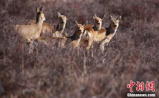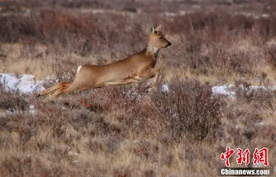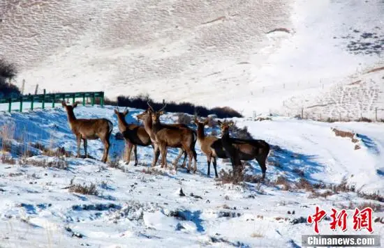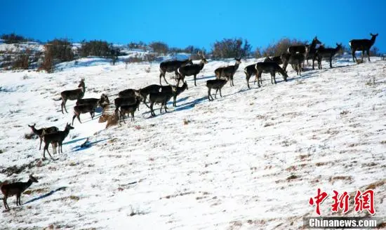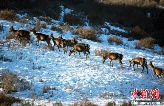 春日里,位于甘肃省武威市天祝藏族自治县境内马牙雪山脚下的抓喜秀龙草原,生机勃勃,国家二级保护动物马鹿、狍鹿时而奔跑,时而跳跃,成群结队“出游”,与覆雪的草地相映成趣,构成了一幅美丽的生态画卷。