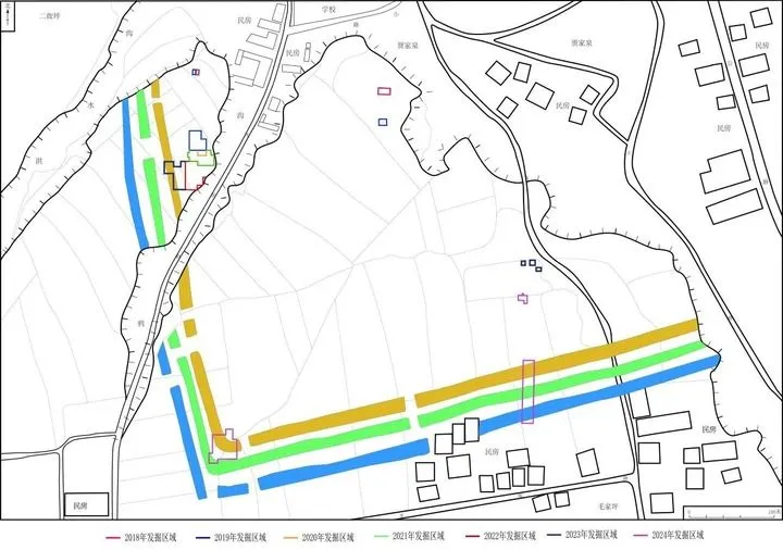 图为甘肃省定西市临洮县寺洼遗址历年发掘区及“围壕(沟)”分布图。(甘肃省文物考古研究所供图