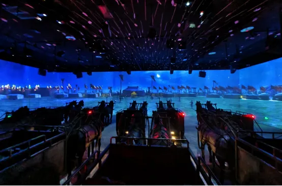汉唐天马城通过场景虚拟还原、AR体感互动、全息舞台、5D动感全景展示等多媒体高科技手段,沉浸式展示凉州文化。