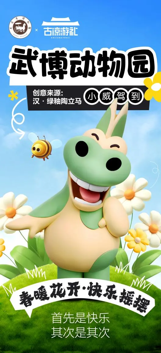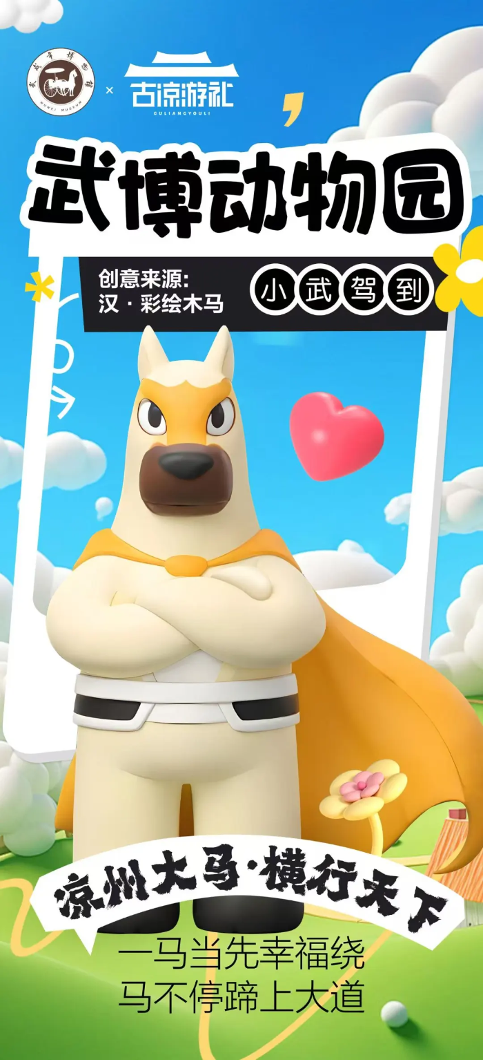 01 文创简介:小武驾到 Hi,我叫小武!我的原型是汉代彩绘木马。 我可不是普通的马哦!我来自西域,在河西走廊长大,我的家乡凉州“畜牧甲天下”,汉武帝称赞我为“天马”。我听觉灵敏勇敢无畏,肺活量好能奔善跑,集西域马、蒙古马、河西走马的优点于一身,堪称马中“六边形战士”!快来把我带回家,让我陪你一起“横行天下”吧! 02 文创简介:小威驾到 Hi,我叫小威!我的原型是汉代绿釉陶立马。 生活太卷,工作太累,感觉快要被压垮了? 别担心,你的“快乐源泉”已上线!我像不像小时候放学路上撒欢儿的你,瞬间带你回到无忧无虑的童年!伸出你的手,来和我击个掌:“嘿,别那么严肃嘛,笑一个吧!”快来把我这只“快乐马”带回家,把烦恼统统甩掉!