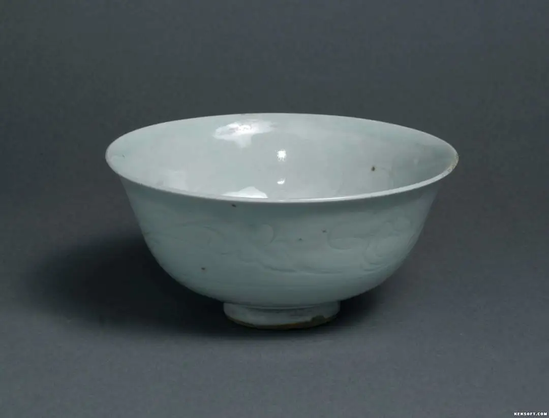 今天向大家分享元代瓷器——刻花影青瓷碗,侈口、深腹、弧壁、圈足,黄白胎,内外壁施影青釉。内底心刻花草图案,腹外壁刻草叶纹。足底不施釉,底心有旋纹和乳钉状突起。保存完整,为国家二级文物,现馆藏于武威市博物馆。