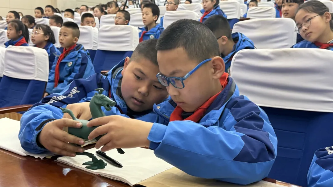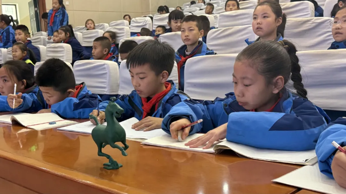 课堂上,讲解员用生动有趣的话语,引领同学们领略武威深厚的历史底蕴。而国宝级文物铜奔马,无疑是这场知识盛宴的“明星”。同学们手持铜奔马模型,仔细观察它昂首嘶鸣的神态、三足腾空的矫健,真实感受到古代工匠的鬼斧神工,也明白了它屹立千年不倒背后的力学奥秘,纷纷为古人的智慧点赞。