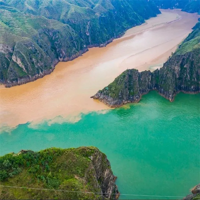 在永靖县刘家峡大坝附近,黄河与洮河以“Y”字形交汇,形成了“黄洮交汇”的奇观。黄河水清澈碧蓝,而洮河则因携带大量泥沙呈现浑浊的黄色,两者相遇却不相融,形成了一条鲜明的分界线,宛如一幅天然的“鸳鸯锅”画卷。