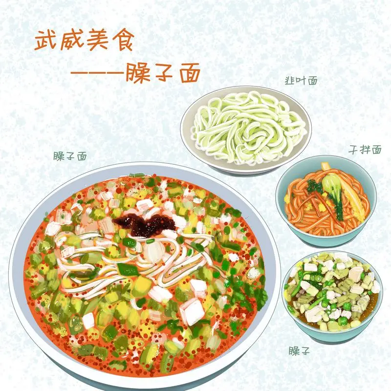 当笔尖蘸满乡愁的色彩,我们在纸上烹制了一场跨越千年的飨宴。请查收这份带着墨香的手绘美食地图——【丝路胃 凉州味】
