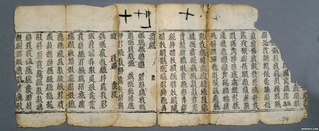 大家好,今天为大家分享的是西夏文印本经“无题”。西夏文献,土黄色夹丝绵纸。残存5页,单页共5行,楷书,内容为佛经,木刻版印制,上下有墨线单栏。经折装。天头上方有墨绘十字状符号。为国家二级文物,现藏于武威市博物馆。