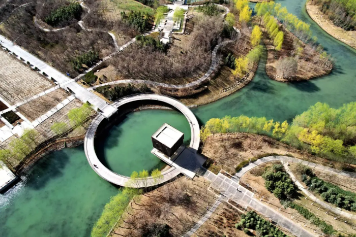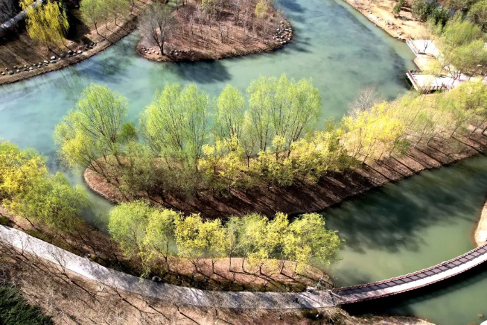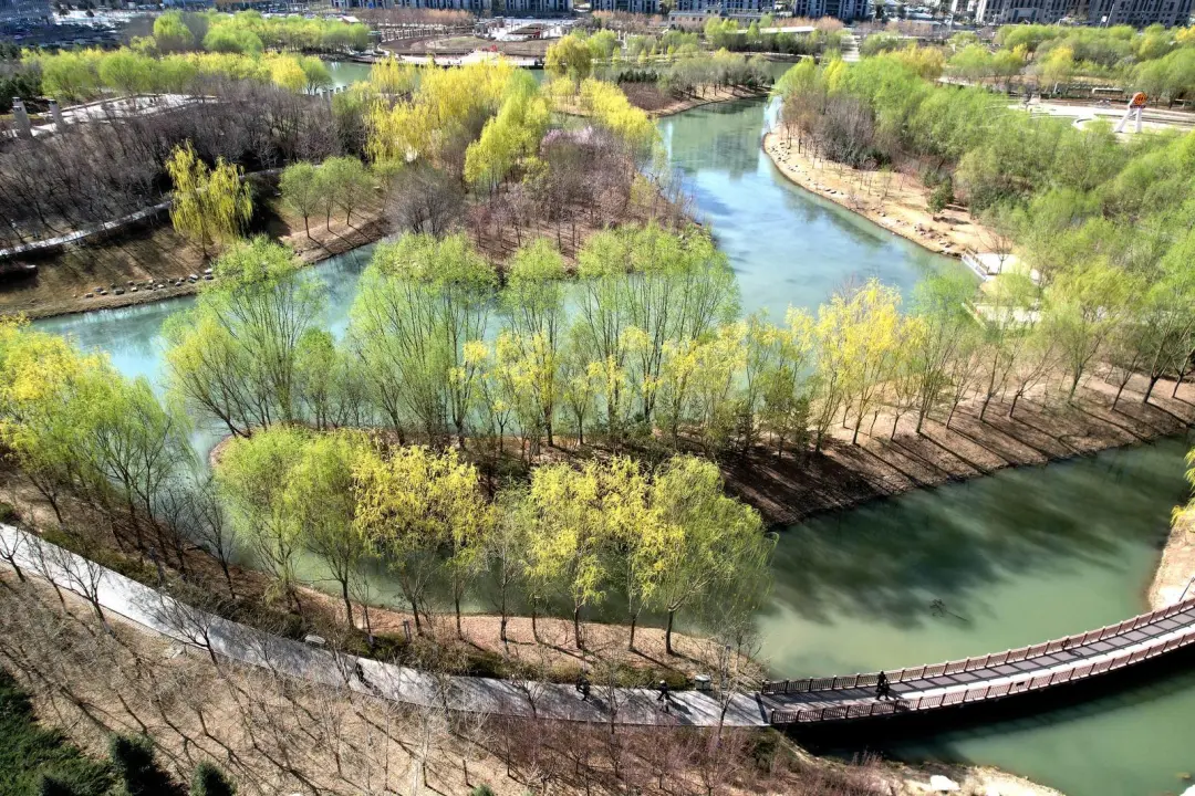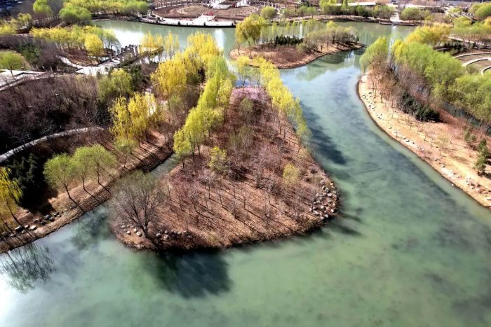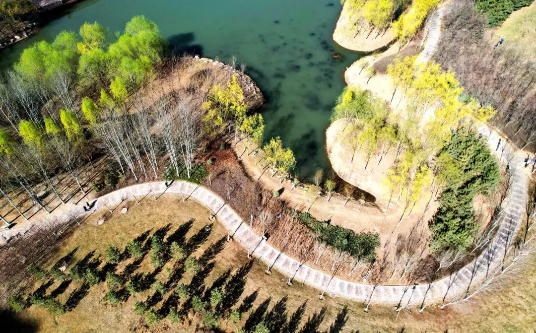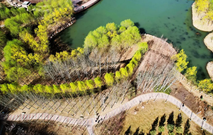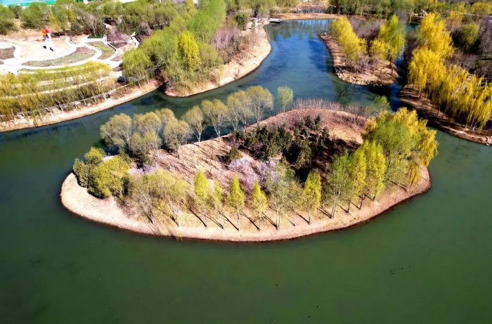 4月10日清晨,武威海藏湿地公园里青绿交织,湖水澄碧。赤麻鸭在湖面上悠闲地嬉戏,晨练的市民和踏春的游客在蜿蜒的木栈道上漫步,共同构成一幅“只此青绿,不负春光”的生态画卷。