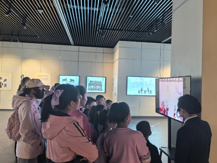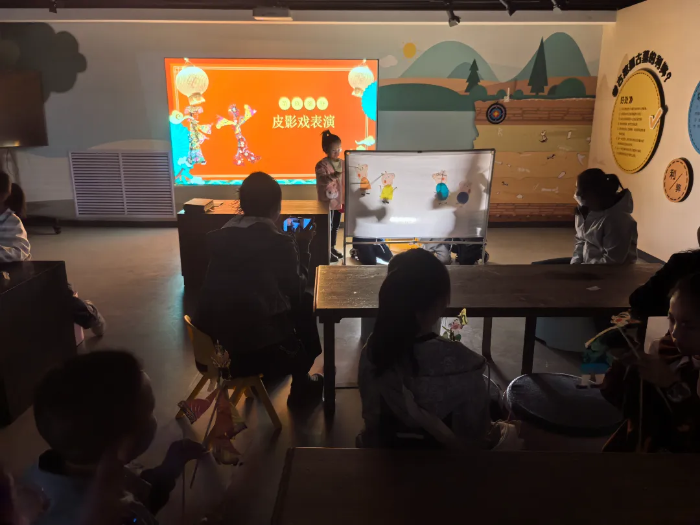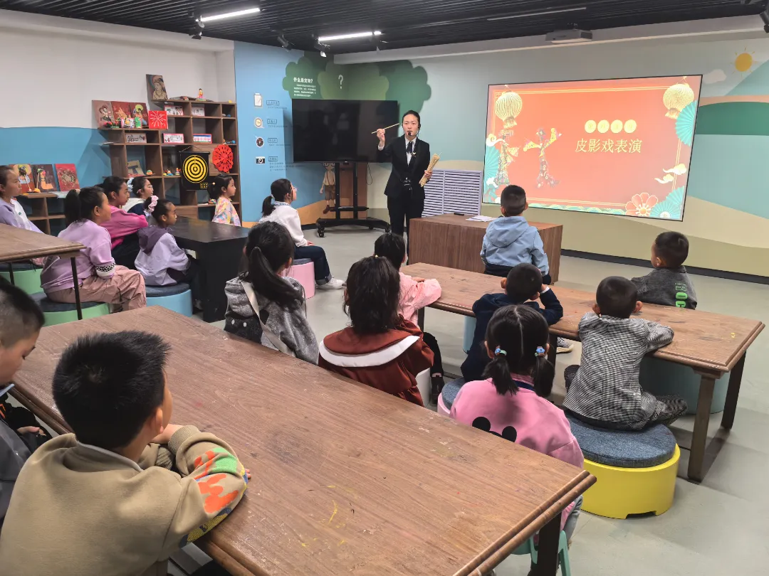现场播放的珍贵皮影戏表演视频中,资深皮影艺人凭借精湛的技艺,让皮影人物在幕布后活灵活现,演绎出一段段精彩故事。孩子们被这古老艺术的独特魅力深深折服,不时爆发出阵阵惊叹与掌声。