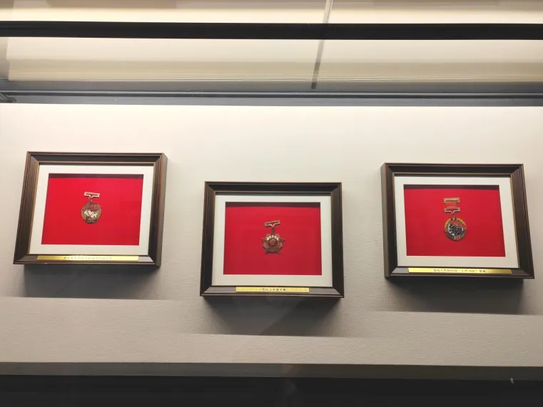 本次展览展出50枚勋章、纪念章,其中包括抗日战争纪念章、解放战争纪念章、抗美援朝纪念章、“独立自由”“八一”“解放”勋章等,正是无数英烈“愿得此身长报国”的碧血丹心,铸就了今日山河无恙的盛世中华。这一枚枚的勋章承载红色历史文化,带领大家回溯历史长河,从红色记忆中汲取奋进力量。