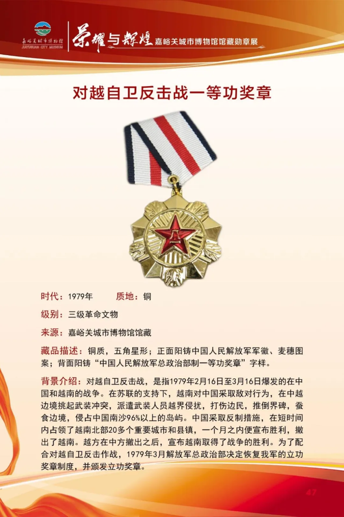 习近平总书记指出“一个博物馆就是一所大学校”,强调了博物馆在保护传承人类文明、推动文化发展中的重要作用。今日,嘉峪关城市博物馆与武威市博物馆共同举办“荣耀与辉煌”馆际交流展,打造流动的红色教育课堂。让每一枚勋章成为传承红色基因的精神纽带,激发全社会的爱国情怀与使命担当,让军功章镌刻的信仰力量融入新时代中华儿女的血脉,在全面建设社会主义现代化国家的新征程上,接续书写属于我们这代人的荣耀与辉煌。