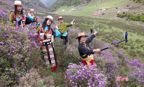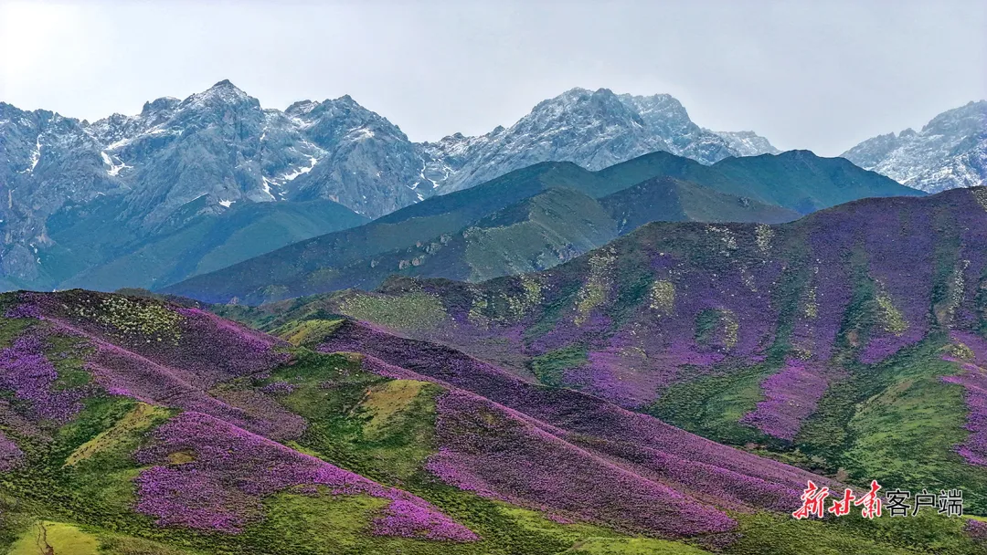 6月,天祝县内的高山杜鹃(俗称香柴花)进入盛花期,数十万亩高山杜鹃组成了一片片花海,将山峦装点成如梦似幻的色彩,吸引众多游客前来拍照留念。
