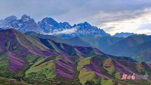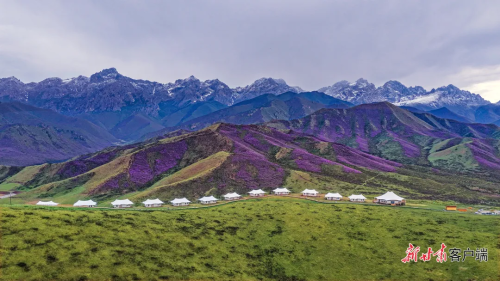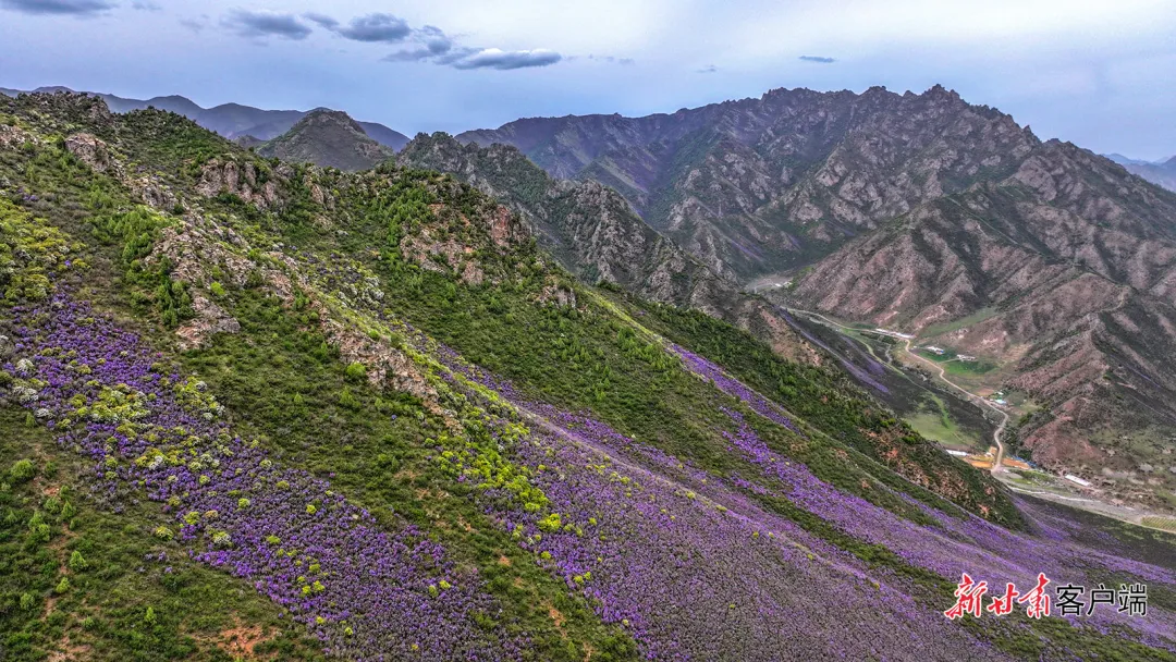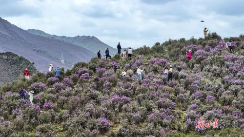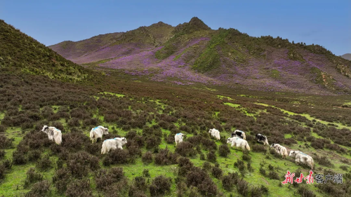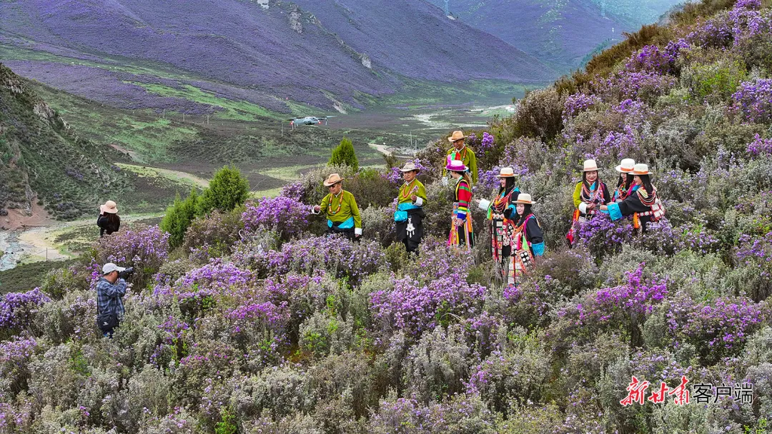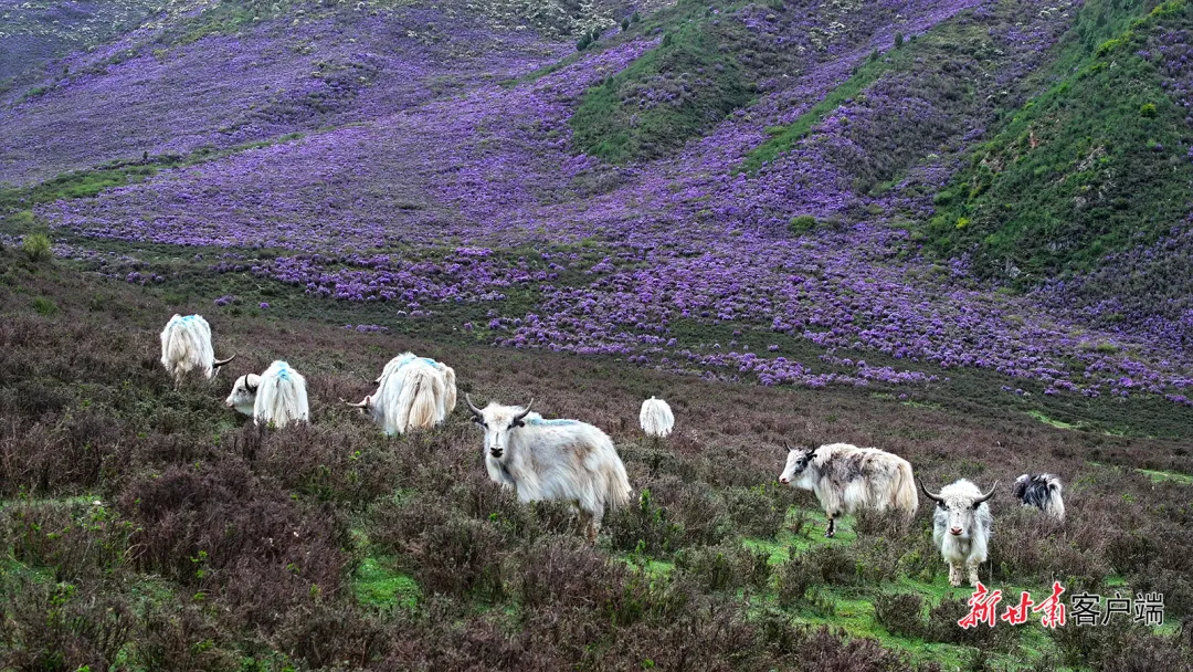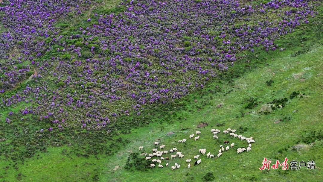 天祝县独特的高原气候与地理环境,为高山杜鹃的生长提供了绝佳条件。端午前后,绵延的山脉被紫色、白色的花朵点缀,与蓝天白云、青山碧草相互映衬。游客们穿梭在花丛间,用镜头捕捉这美丽的景象。