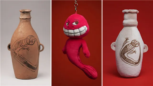△鲵鱼纹彩陶瓶“陶二妮”和以其为原型的可以拆卸的文创产品。