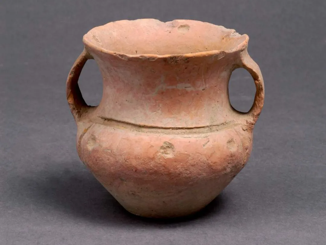 大家好,今天为大家分享的是新时期时代陶器涡点纹双耳细泥红陶罐,细泥红陶质,侈口,微束颈,鼓腹,斜收,平底。颈肩部有对称双耳,口沿内有四个凹陷圆涡,肩部有一道凹弦纹,双耳两侧阴刻竖线,腹部一圈八个凹圆涡。为国家三级文物,现馆藏与武威市博物馆。
