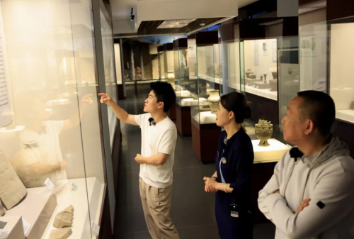 漫步馆中,董宇辉在一批体量巨大、制作精良的周代陶鬲与石磨盘前驻足。它们静静地陈列着,器型敦实稳重,承载着一个民族从渔猎走向定居的记忆。