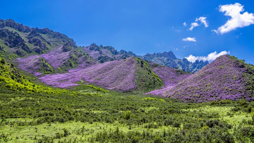 这么近,那么美。天祝邀您共赴一场诗意花事。山风掠过祁连山的褶皱,千万朵紫色杜鹃骤然苏醒。粉雾轻笼峰峦,绛紫漫过草甸,将天祝的每道沟壑都晕染成梦幻的色彩。在海拔三千米的天地间,它们以最热烈的姿态,绽放出生命的华章,等待着与你的相遇。这里不仅有天地馈赠的视觉盛宴,更藏着古老民俗的烟火温度——当快门定格花影摇曳的瞬间,你将读懂,何为 “一半人间烟火,一半山川湖海”的浪漫。