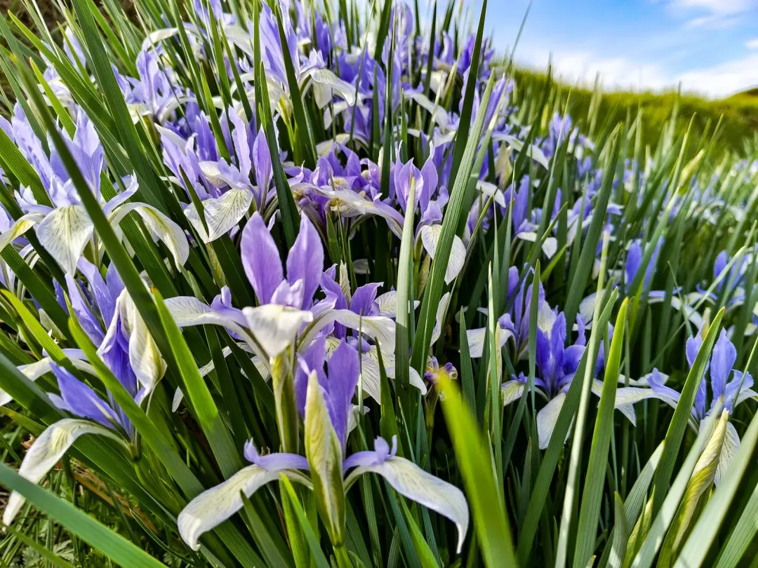 在碧绿的草滩上,马莲花的花色如同被打翻的调色盘,浅蓝、深紫、雪青……在阳光下变幻出迷人的色彩。纤细的花茎托着六片舒展的花瓣,向着不同方向伸展,像极了个性十足的坐标轴,又似一幅未干的油画,笔触肆意而神秘。每次邂逅马莲花海,游客们都会不由自主地驻足打卡,为这份被大多数人忽略的原始美丽所震撼。