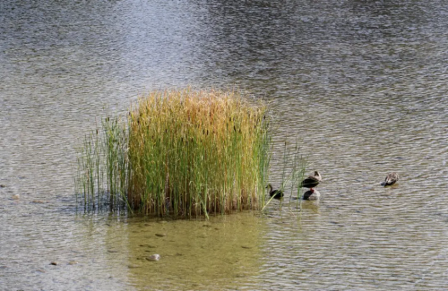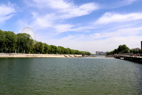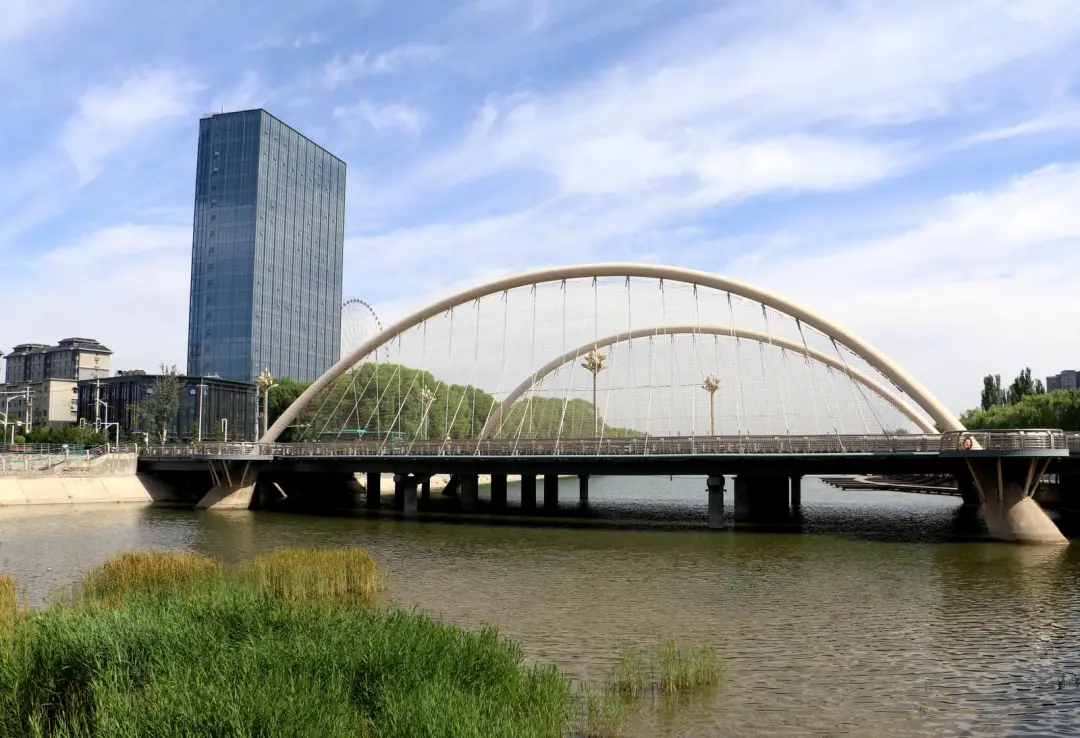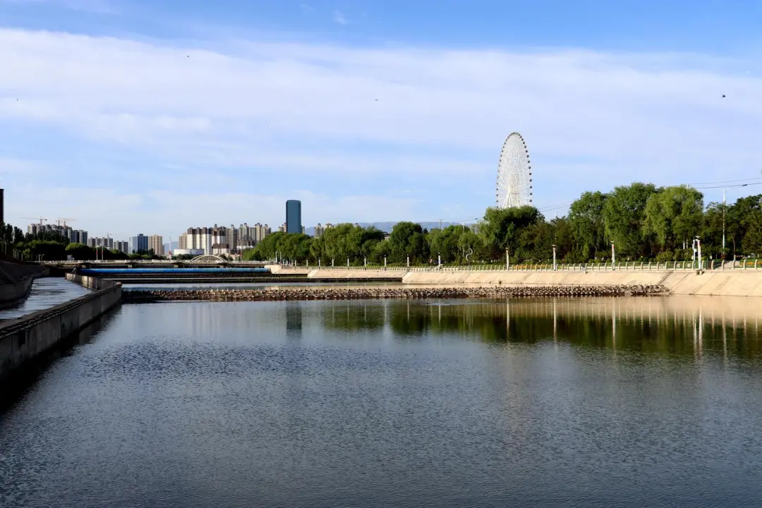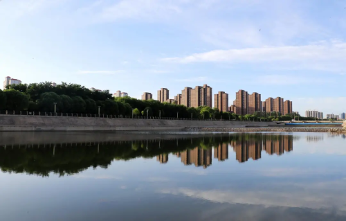 湖面波光粼粼,湖水与群楼交相辉映,只见赤麻鸭、长脚鹬在嬉戏、觅食,它们时而在湖面窃窃私语、时而翩翩起舞、时而振翅起飞,给静谧的湖面增添了一抹气势和动感。(记者:梁俊秀)