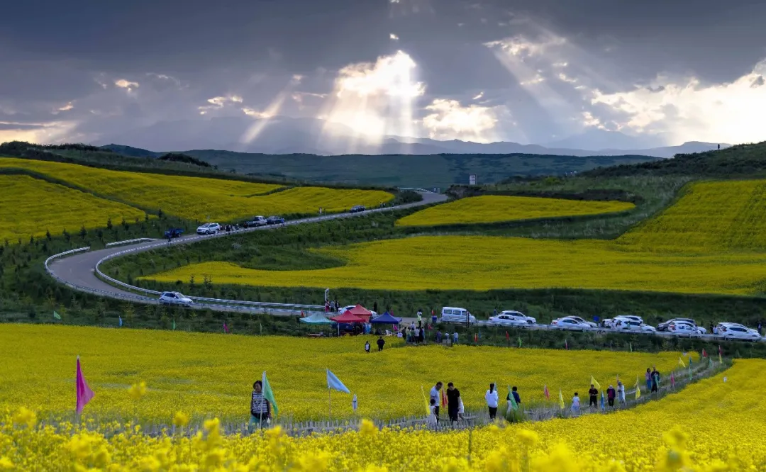 今年5月,X145古浪至哈溪公路(古浪段)成功入选全国最美公路。沿途穿越森林、花海,远处雪山若隐若现,白墙青瓦的民居点缀其间,车窗框住的每一幕都是流动的风景画。停车驻足时,带孩子观察路边的野生植物,听鸟鸣虫唱,感受“车在画中行,人在景中游”的惬意。