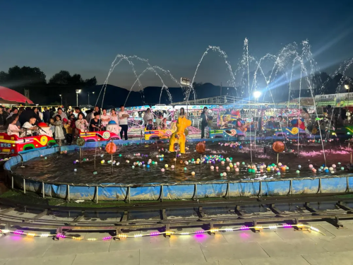游玩区里,亲子乐园的各种项目让孩子们笑声不断,美食区更是人头攒动,升腾的热气裹着食物的香气弥漫开来,摊主们忙碌的身影与游客的交谈声交织,一派热闹景象。现场还有文艺节目助兴,轻快的旋律与游客的喝彩声交织,为整个景区添了几分欢腾。