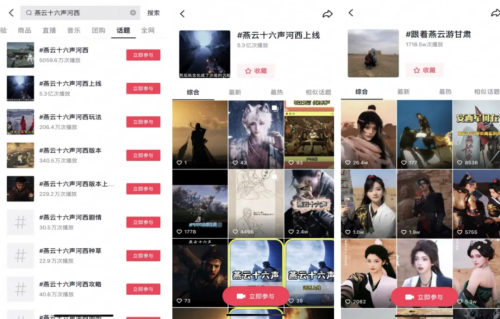 活动相关抖音话题“#燕云十六声河西上线”“#燕云十六声河西”等总播放量超6亿。