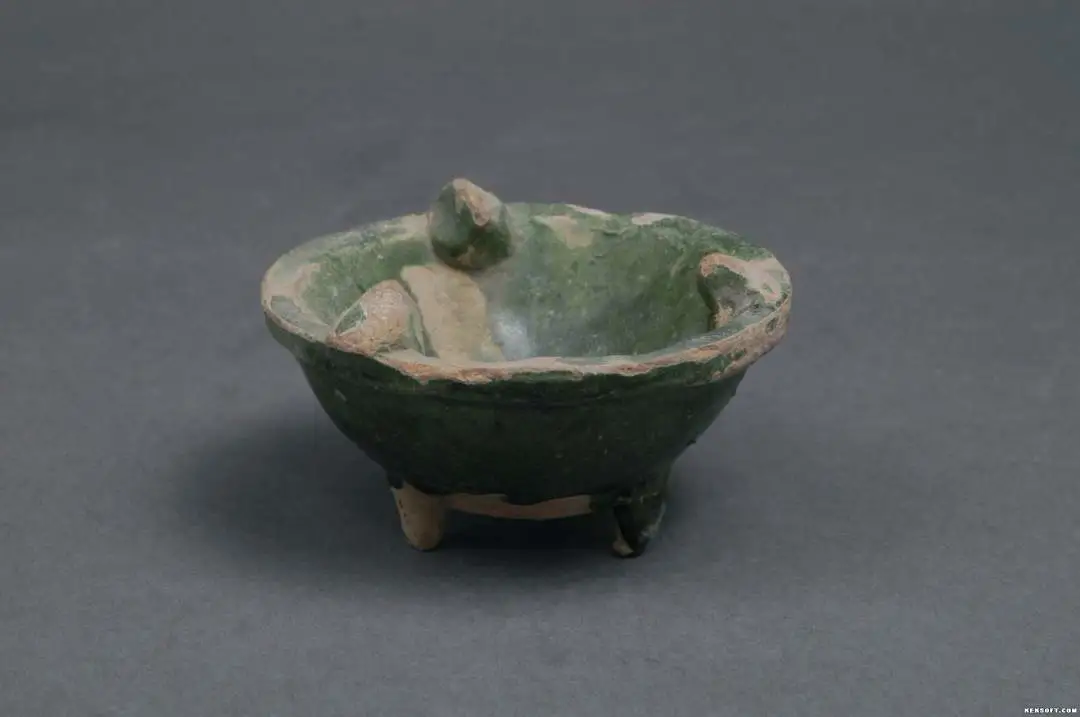 今天向大家分享的是绿釉陶釜。汉代陶器。红胎,绿釉,敞口、平沿、厚唇、斜腹、饼形底,口沿有三个锥型支垫,底有三锥状足。器形完整。甘肃武威磨嘴子出土。为国家三级文物。现藏于武威市博物馆。
