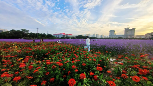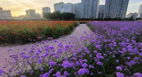 夜幕降临,晚霞成绮,花海似锦。市民们纷纷步入市政广场,徜徉在斑斓的花海中。一幅人与自然和谐共生的美丽画卷,缓缓展开在每个人的眼前,让人心旷神怡,流连忘返。