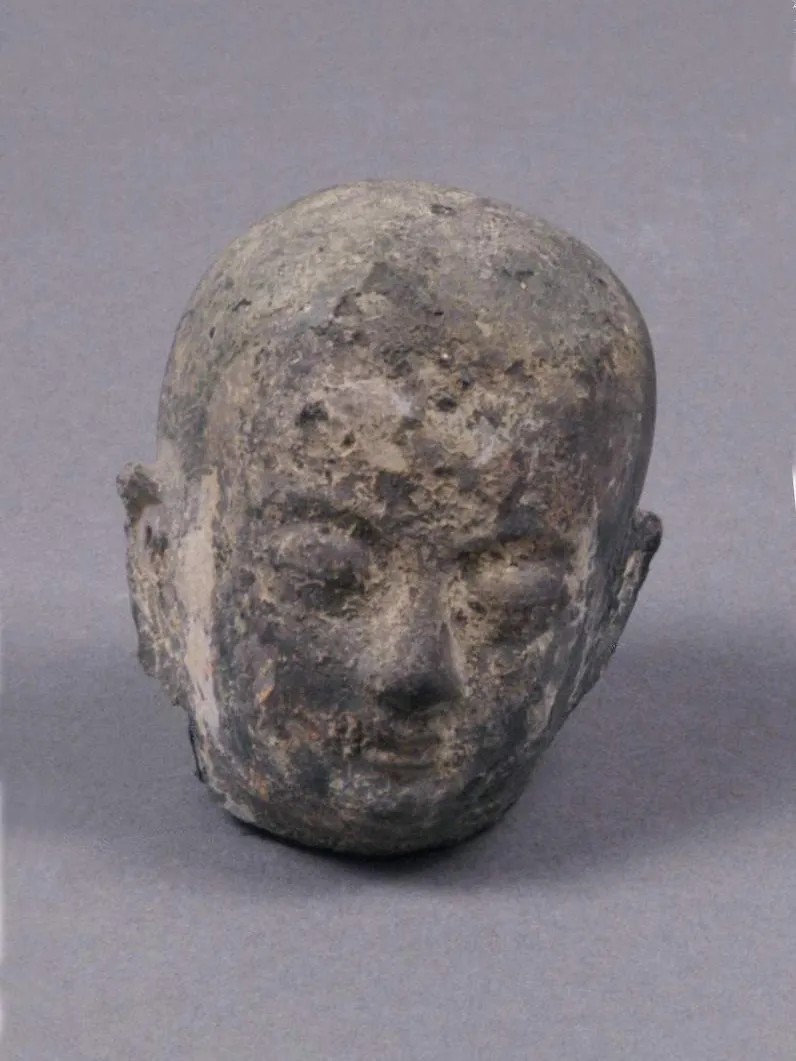 大家好,今天为大家分享的是弟子头像,西夏雕塑造像,黑陶质,僧人,秃发,大耳,棱鼻,双目微眯,面目清秀。为国家三级文物,现藏于武威市博物馆。