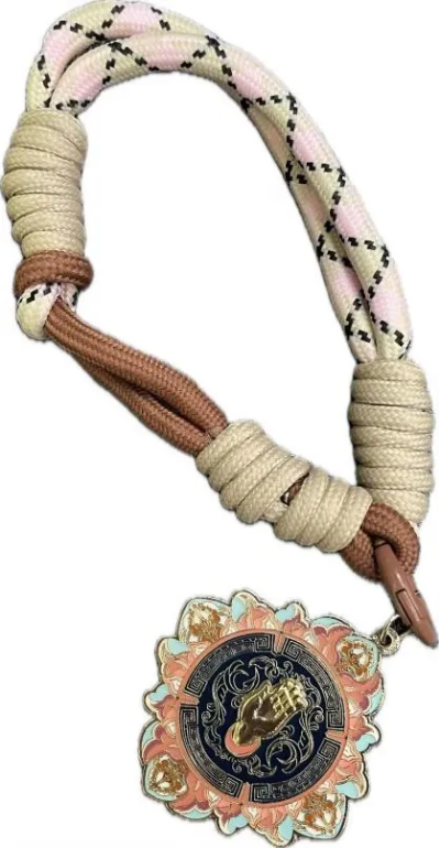 绳带部分是编织绳,粉白褐色交织,摸起来软乎乎但超结实,挂钥匙、扣包包,怎么扯都不勒,主打一个“温柔又抗造” !牌体用的金属 + 珐琅彩,沉甸甸有分量,珐琅彩牢牢扒在金属上,日常磕磕碰碰也不怕掉漆,哪怕你天天揣兜里“造”,它都能保持“颜值在线”,陪你风里来雨里去 ,都能保持“刚拆盒的新鲜感”。