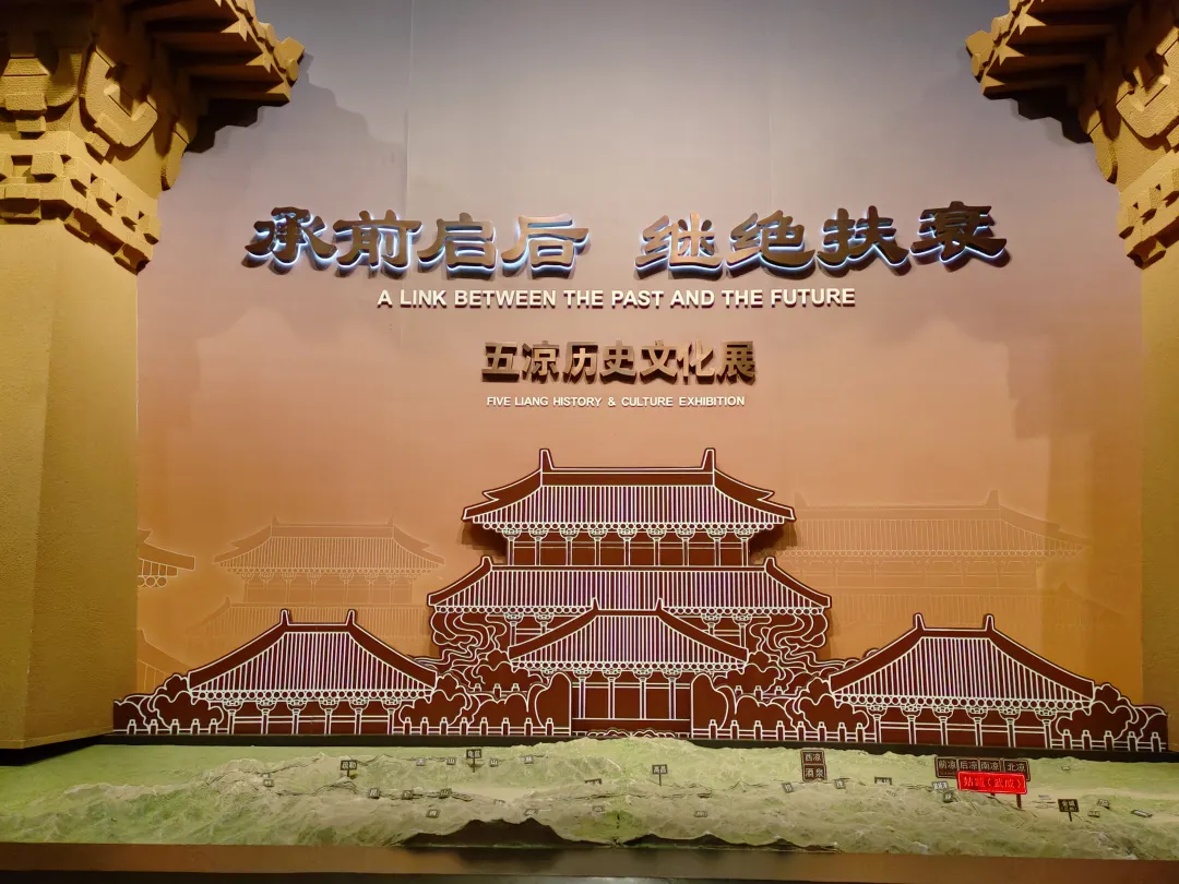 《五凉历史文化展》分“政权兴替,民族融合”“经济繁荣,贸易畅通”“名门著姓,文化传承”等12个单元,通过众多精品文物,结合声、光、电等高科技手段,全方位呈现五凉文化“兼收并蓄,融合创新”的特征,展现五凉文化在中华文明多元一体进程中的重要地位和独特贡献。