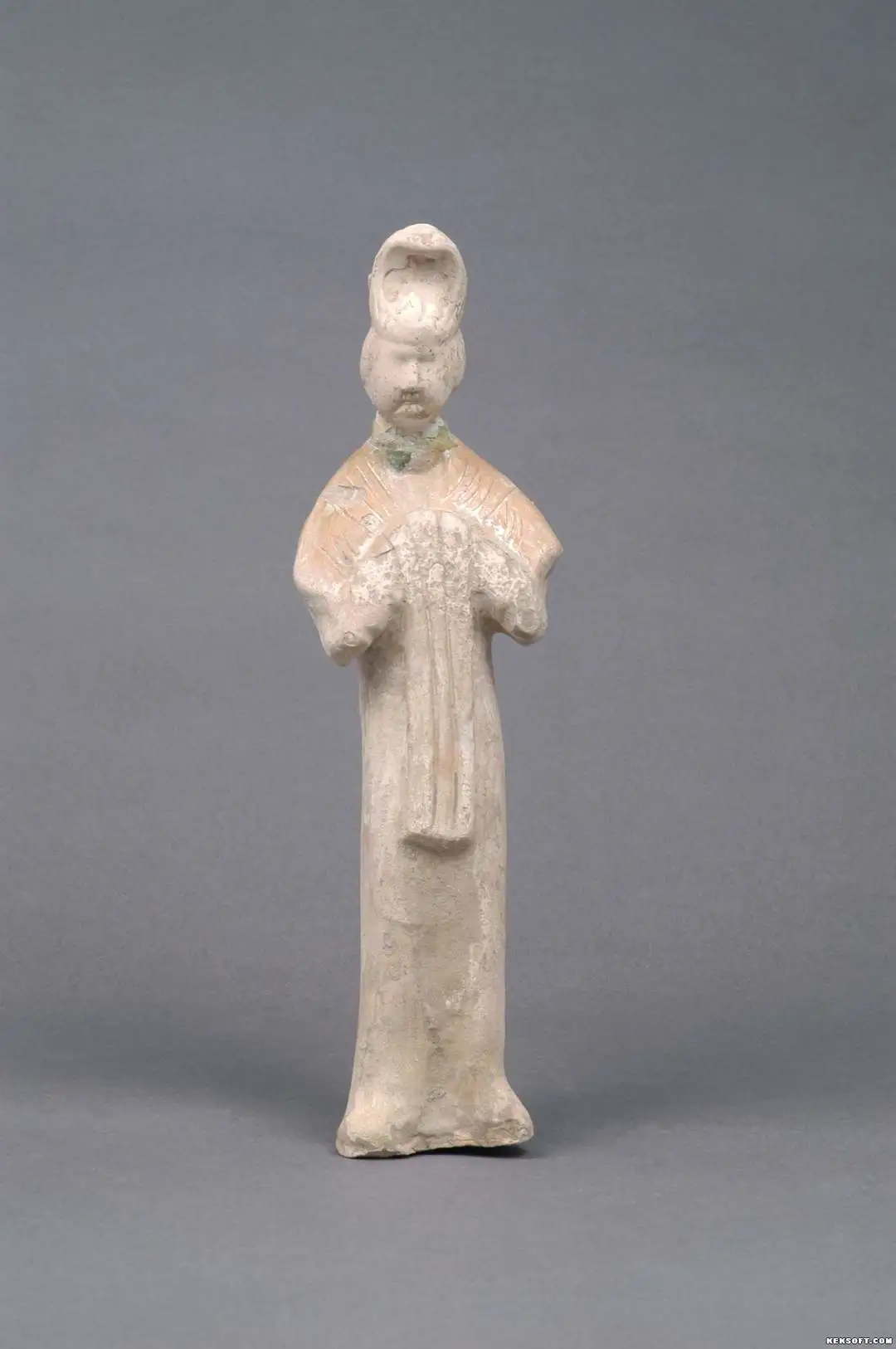大家好,今天向大家分享的是唐开元十四年陶器唐三彩女立俑,红陶质,人物袖手立姿。梳高娥髻,髻顶弯曲;丰面、棱鼻、深目,着长裙,外披巾,通体施黄釉。人物形体修长。为国家三级文物,现馆藏于武威市博物馆。