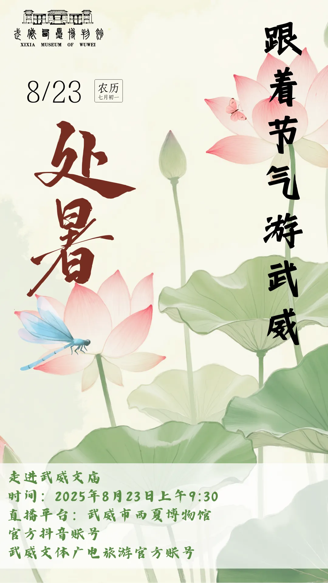 明日上午9:30,武威文庙邀你共赴秋约!主播将带您游览“陇右学宫之冠”,感受文脉悠长;畅聊武威美食美景,感受风土人情……让我们相聚直播间,跟随节气的脚步,开启一段充满惊喜与收获的处暑之旅。