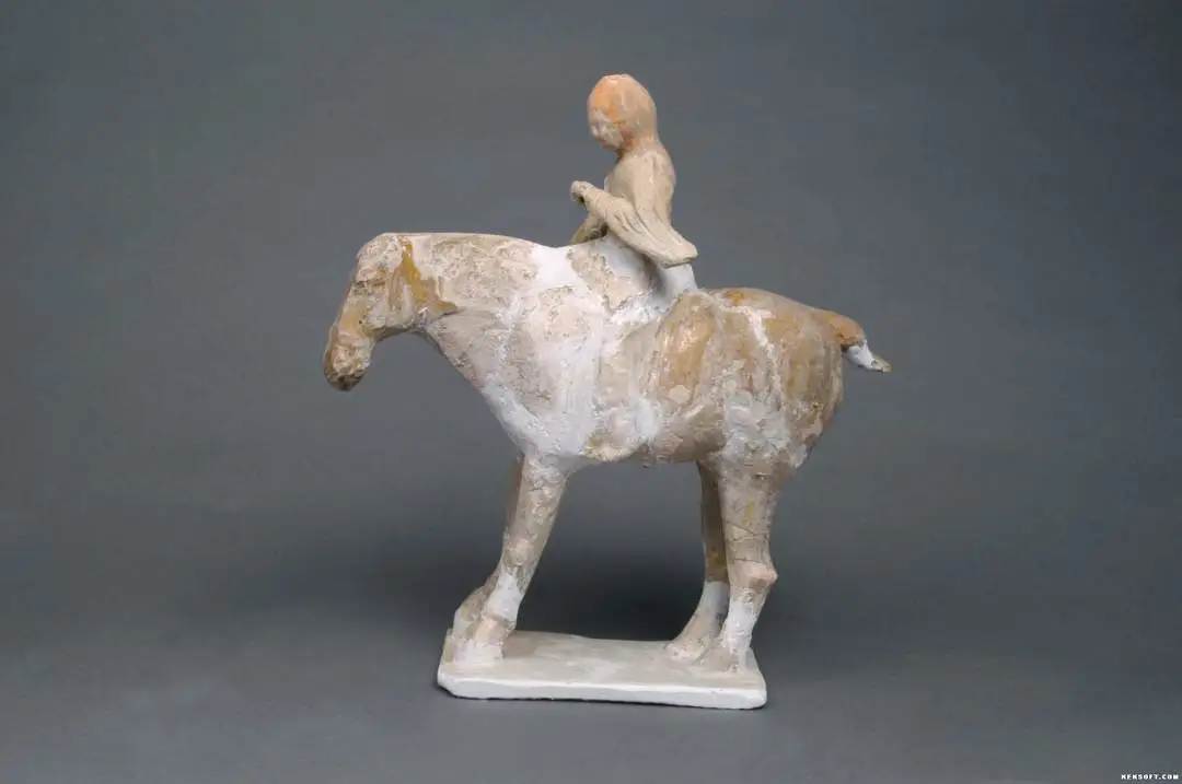 大家好,今天向大家分享的是唐三彩骑马男俑,红陶质,马四肢立于长方形踏板上,中心微靠后,马头微低,眉目不清,四肢粗壮,体格健硕,锥状短尾。骑俑头戴风帽,右臂直,左臂曲于胸前,手空拳,似牵缰之状。马施黄釉,俑、踏板素面,风帽涂虹彩。
