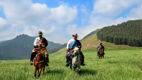 最后一站,我们乘车来到弘化公主牧场。这里的每一棵古柏、每一块石子,都可能见证过当年弘化公主与吐谷浑王的爱情故事和生活足迹。牧场的氛围宁静而温馨。
