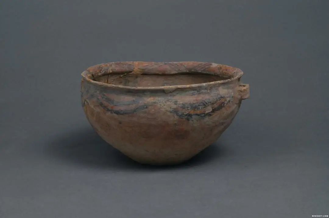大家好,今天向大家分享的是新石器时代马家窑类型陶器,马家窑系连弧纹双耳彩陶钵,红陶泥质。敛口,上折沿,束颈,弧壁,深腹下收,小平底。颈下有双贯耳。红衣黑彩,内口沿有折线纹,腹壁绘网格纹,外壁口沿至腹上部绘双连弧纹。为国家三级文物,现馆藏于武威市博物馆。