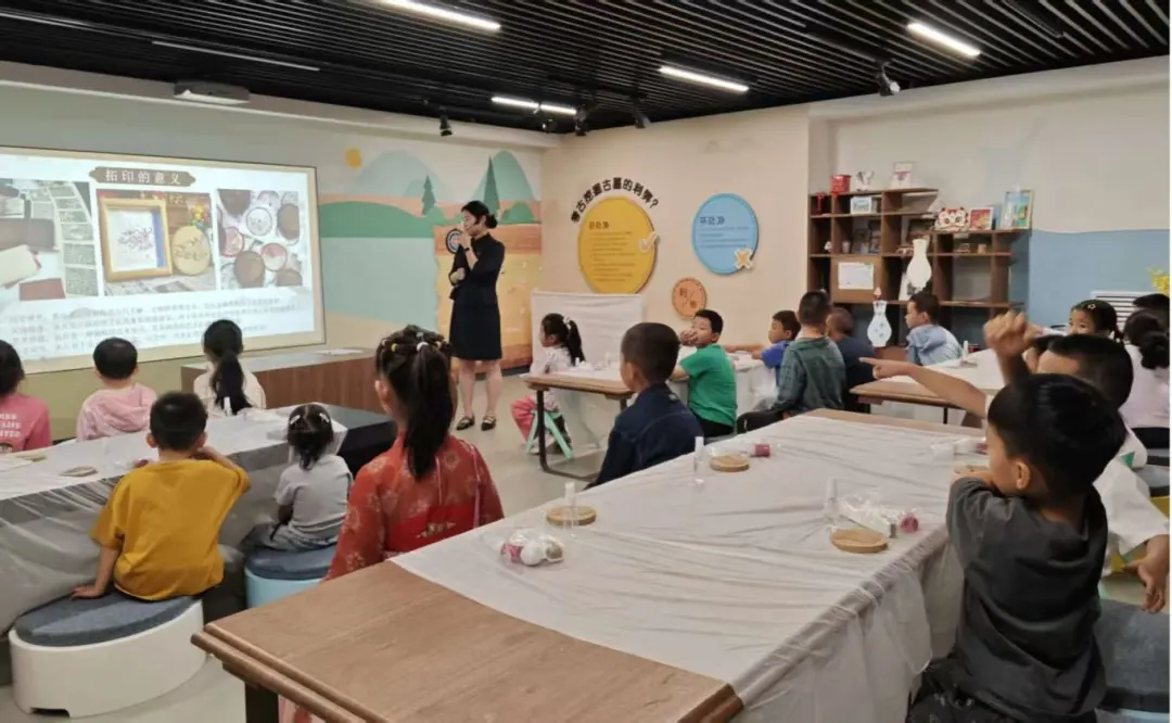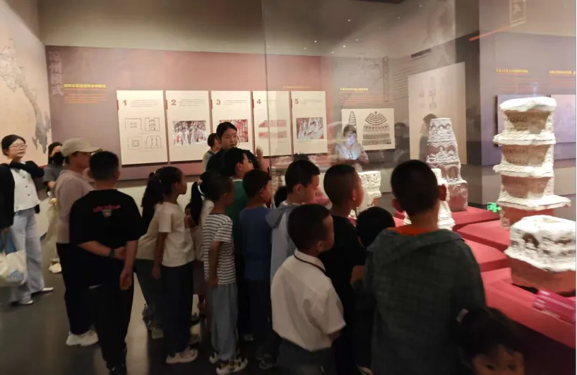 在探秘完展厅,孩子们来到青少年活动中心,在这里,北凉石塔的故事有了更生动的注脚。从佛教东传的历程到石塔作为信仰载体的作用,从石刻技艺的传承到壁画色彩的秘密,老师用通俗易懂的语言,将历史的脉络编织成孩子们能听懂的“文化小故事”。当讲到“拓印”这门能让石头“说话”的技艺时,孩子们的眼睛亮了起来——原来古人是这样把石碑上的文字和图案“变”到纸上的!