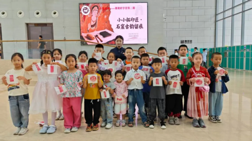 活动结束时,孩子们小心翼翼地将拓片收起来,仿佛捧着一份沉甸甸的收获。这场旅程通过“看、听、做”的方式不仅让孩子触摸到了北凉石塔的沧桑、感受唐代壁画的灵动,更通过亲手拓印,让千年古韵在指尖留痕,文化种子悄然播撒心间。