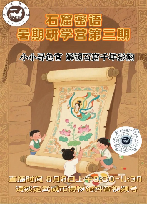 当1600年前的矿物颜料遇见童真画笔,会碰撞出怎样的火花?2025年8月8日9:30-11:30,武威市博物馆抖音官方直播间开启“石窟密语暑期研学营第三期”直播。跟随“小小寻色官”探秘天梯山石窟,解码矿物颜料的千年奥秘,看孩子们用画笔复老色彩在指尖重生。