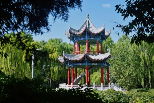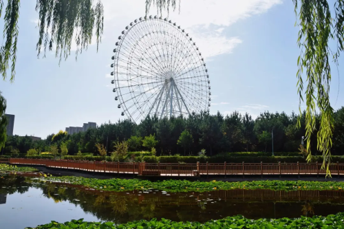 凉州植物园的秋,宛如一首悠扬的诗。人工湖碧波潋滟,在秋日暖阳的轻抚下,波光粼粼,闪烁着细碎的金光,亭台错落其间,古朴典雅。摩天轮高高耸立,在蓝天的映衬下格外醒目。荷花池里则是另一番迷人景象,荷花于秋风中低眉颔首,别具清韵。抬眼望去,摩天轮、人工湖与荷花池相映成趣,交织成一幅绚丽的秋日画卷。